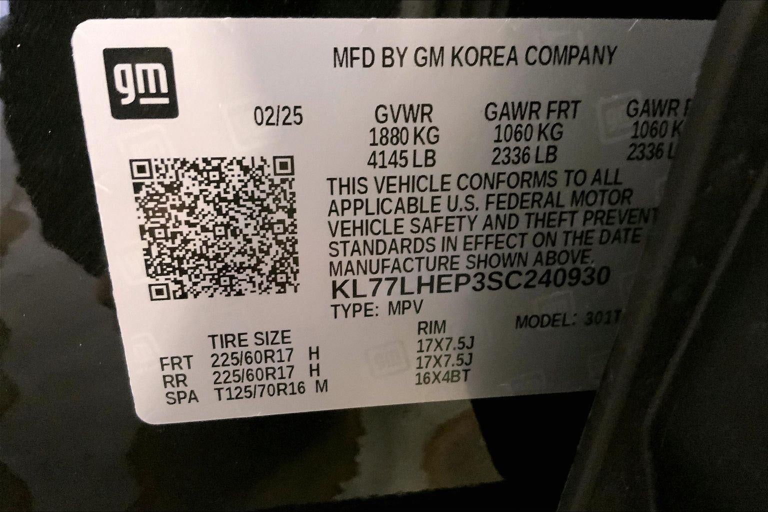 - Tires, 225/60R17 all-season, blackwall